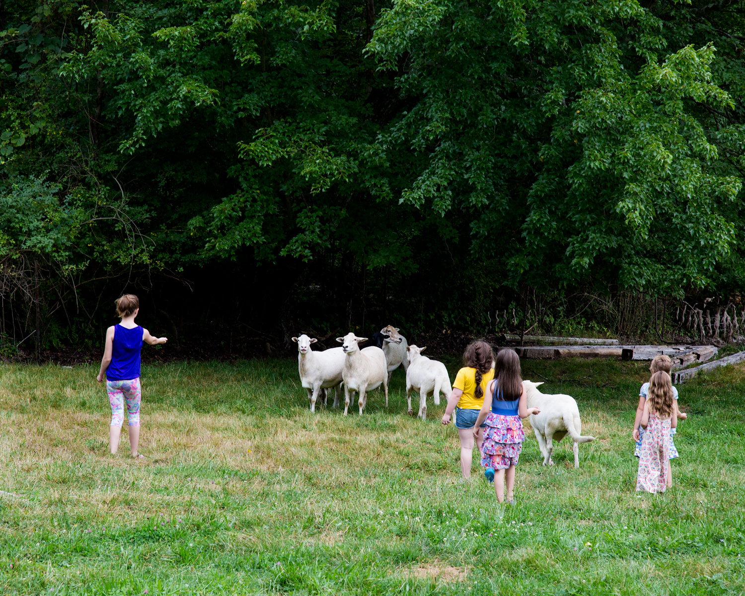 ES: Yeah. Art and farm camp. At 4pm, Alan Ryder, who is my cousin and has the eight sheep on the farm, is going to come and show the kids the sheep. Which is adorable.